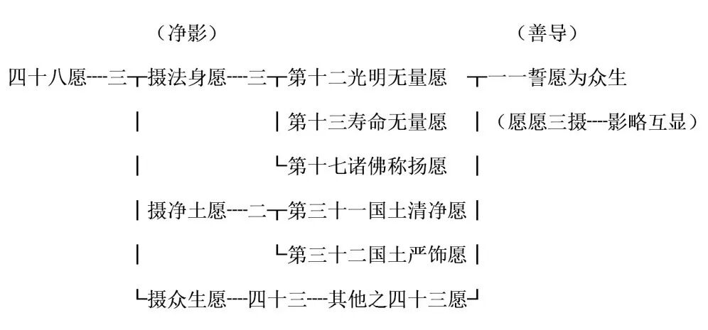 如斯,若依净影大师,四十八愿之结局则是要约而成为(一)摄法身愿、(二)摄净土愿、(三)摄众生愿之三大愿。
