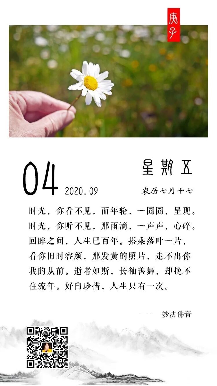 时光,你看不见,而年轮,一圈圈,呈现。时光,你听不见,那雨滴,一声声,心碎。回眸之间,人生已百年。搭乘落叶一片,看你旧时容颜,那发黄的照片,走不出你我的从前。逝者如斯,长袖善舞,却挽不住流年。好自珍惜,人生只有一次。
