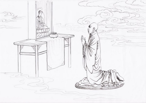 尔后,大师乃隐于终南山悟真寺,专修十六观法,冥心思惟,如法作观。不出数年,成深妙观,于定中备见宝阁、瑶池、金座,宛在目前。见此,大师不觉涕泗交流,不禁举身投地。