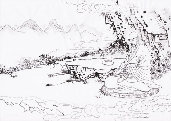 尔后,大师乃隐于终南山悟真寺,专修十六观法,冥心思惟,如法作观。不出数年,成深妙观,于定中备见宝阁、瑶池、金座,宛在目前。见此,大师不觉涕泗交流,不禁举身投地。